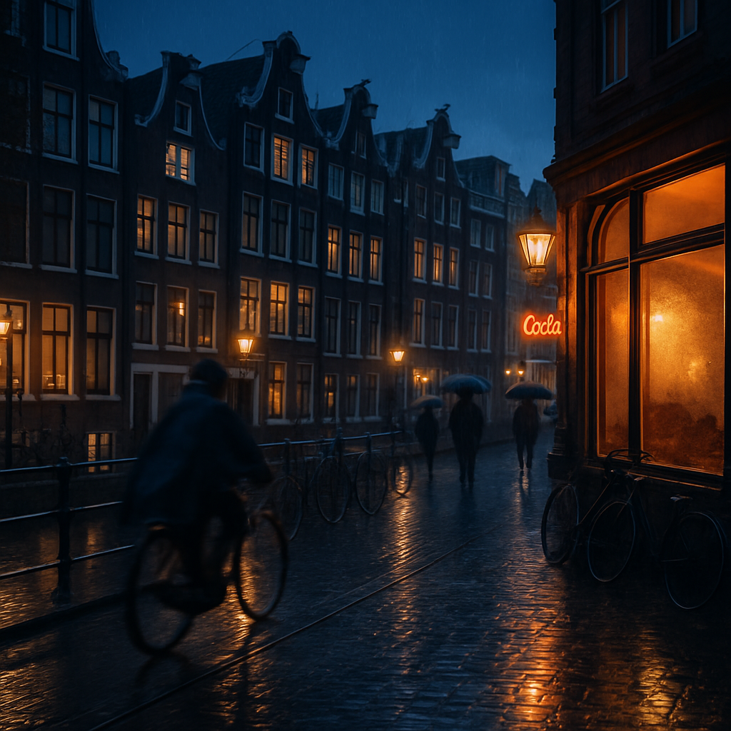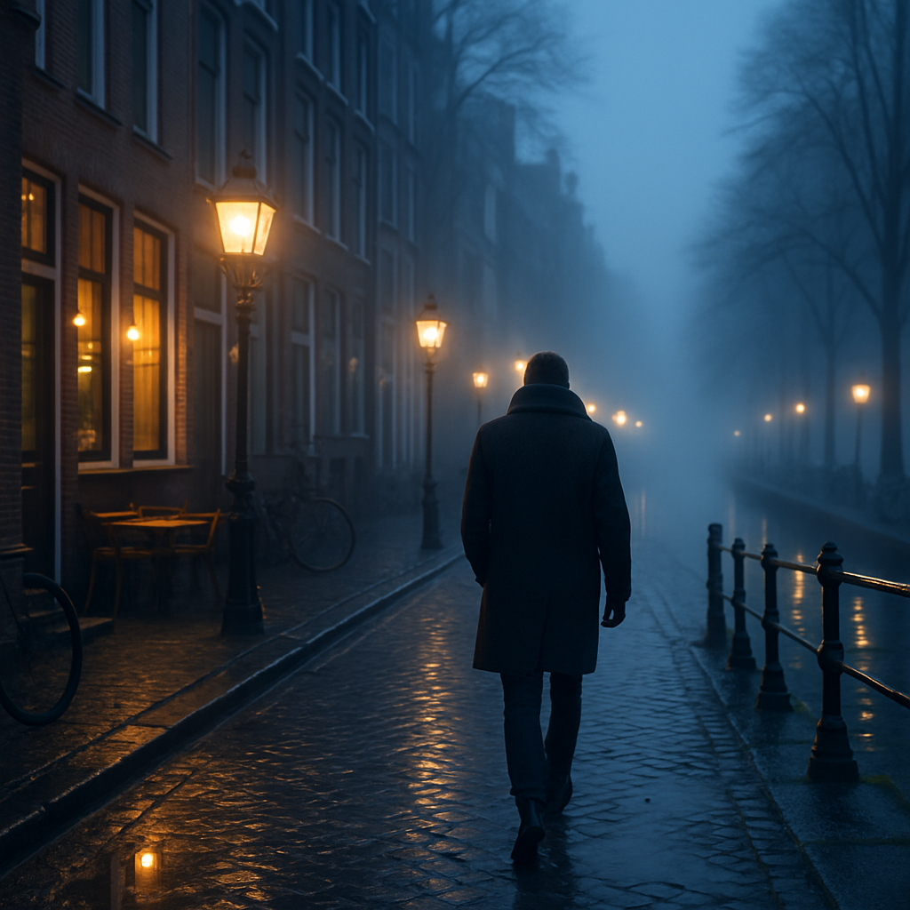 De regen valt als een zachte aansporing om langzamer te lopen. Amsterdam glanst, de stenen ademen dieper, en elke druppel…