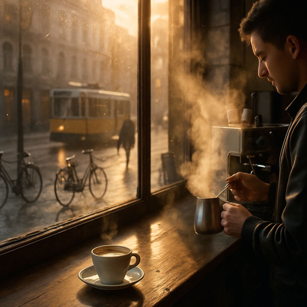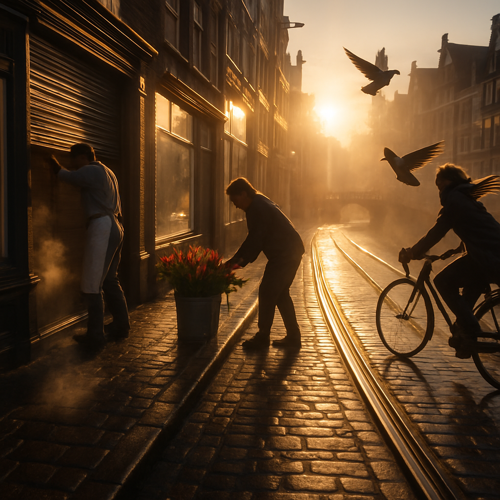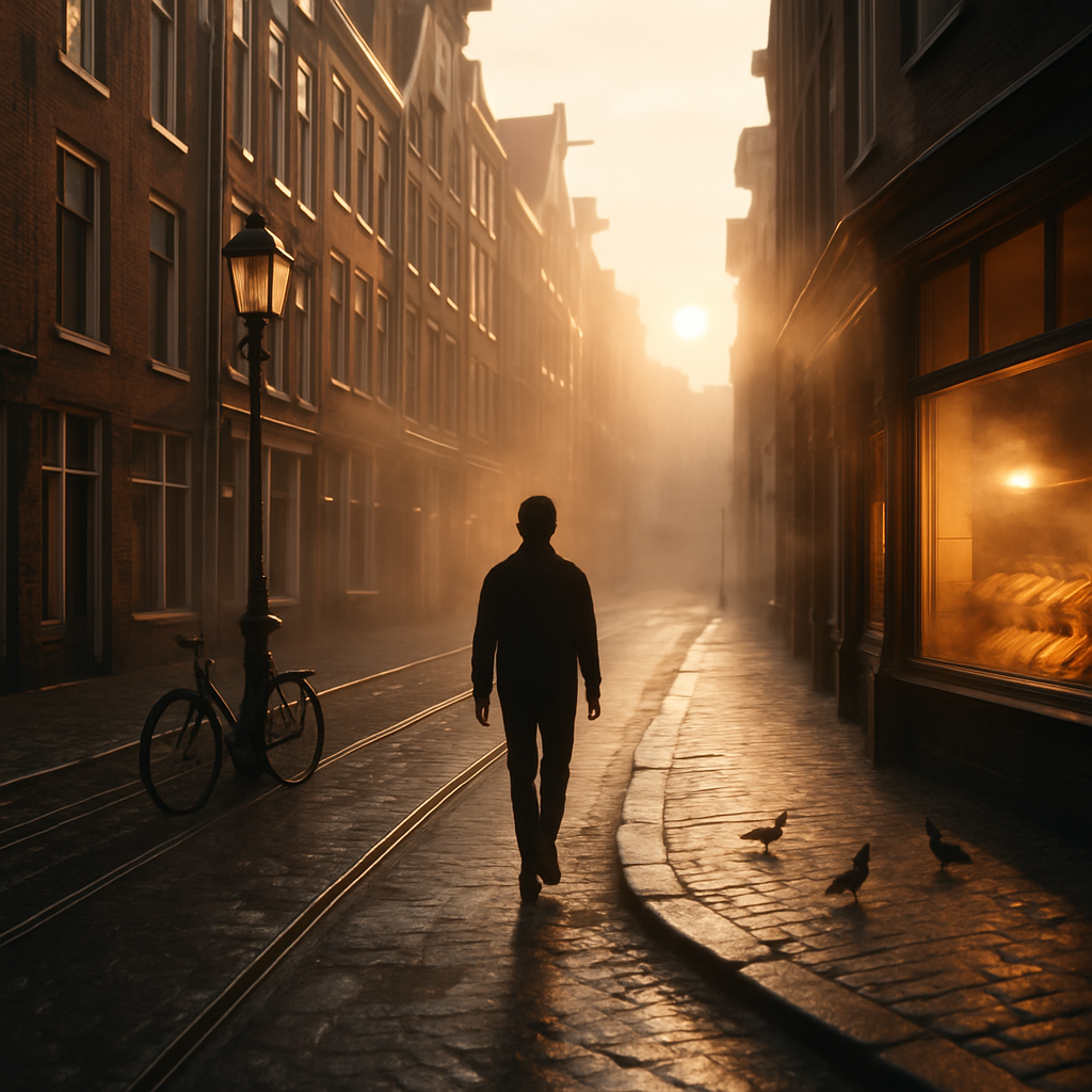 De stad ontwaakt alsof iemand zachtjes een gordijn openschuift. Een schemering van honingkleurig licht kruipt over bakstenen gevels, legt zinderingen…