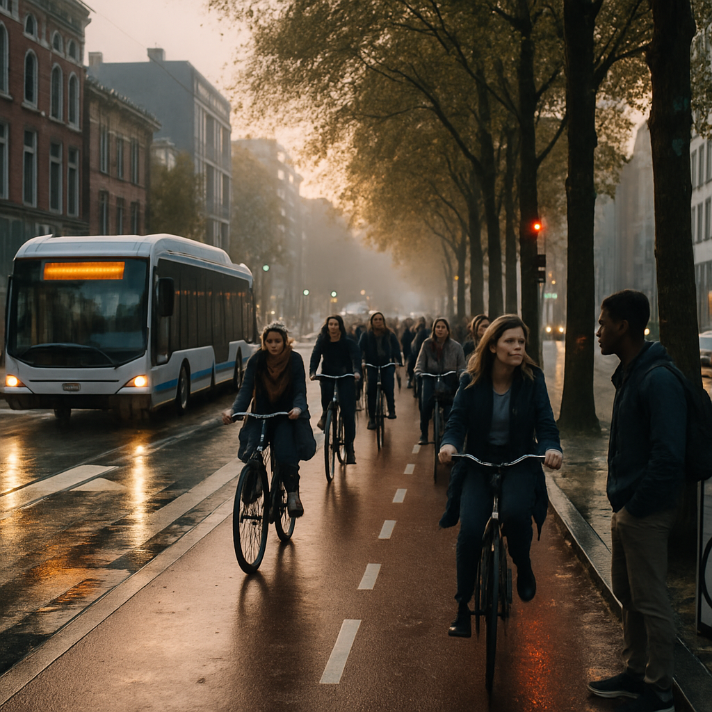 De ochtend valt als vloeibaar koper over de stad wanneer het recente nieuws over een emissievrije buslijn en bredere fietspaden…