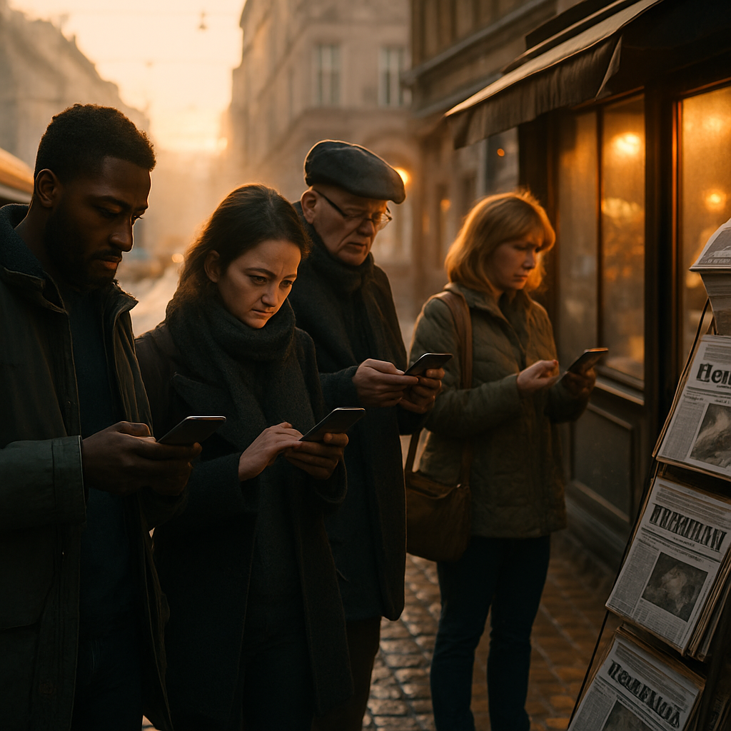 Het ochtendlicht glijdt als vloeibaar goud over de stoeptegels, terwijl één bericht — fragmentarisch, prikkelend, veelbelovend — de stad binnendringt.…